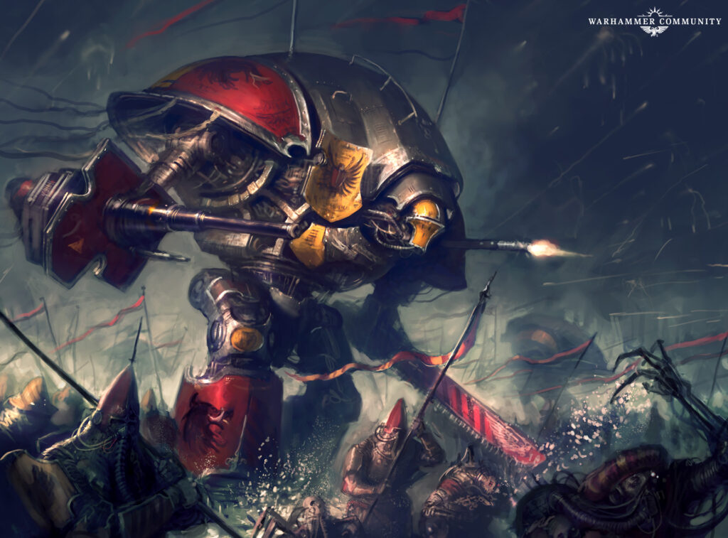 インペリアルナイトは銀河で最も優れ、そして最も名誉のある戦士の1団としてその評判に恥じない存在である。その巨大な装甲戦闘兵器は、通常なら突破できないような防衛線を軽々と突破する。運がいいことに、その雄大な姿はウォーハンマーアートで沢山描かれているぞ。至高王も祝福してくださっていることから、今回はそんな今回はそんなインペリアルナイトををお見せしよう。